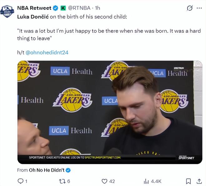 卢卡-东契奇此役复出了,他在赛前谈到自己第二个孩子的出生:很高兴能在她出生时陪伴在她的身边,从她身边离开是一件非常不容易的事情。